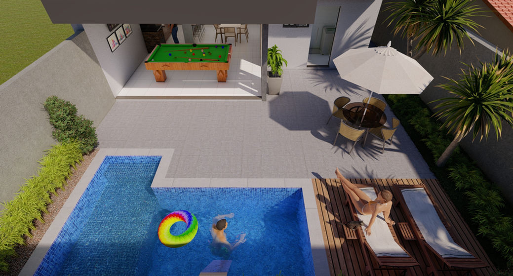 ÁREA TOTAL DE CONSTRUÇÃO: 141,89 m² da casa + 14,40 m² da piscina.