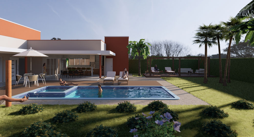 ÁREA TOTAL DE CONSTRUÇÃO: 256,56 m² da casa + 36,00 m² da piscina.